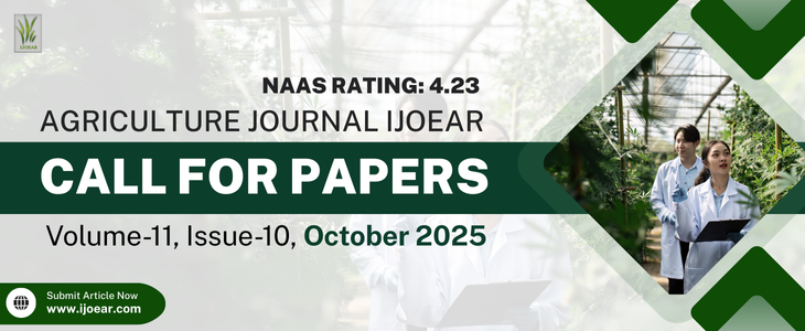 Dear Researcher, "Greetings from Agriculture Journal IJOEAR!" The Agriculture Journal IJOEAR is inviting submissions of original research papers for publication in our Volume 11, Issue 10 (October 2025). NAAS Rating: 4.23 We welcome submissions on a wide range of topics in agriculture, including: Agronomy, Soil Science, Plant Breeding and Genetics, Plant Pathology, Entomology, Agricultural Economics and Extension, Sustainable Agriculture, Precision Agriculture, Climate Change and Agriculture, Food Security, And many more! Check our Recent Issue: Volume-11, Issue-9, September 2025. Benefits of Publishing with Agriculture IJOEAR: